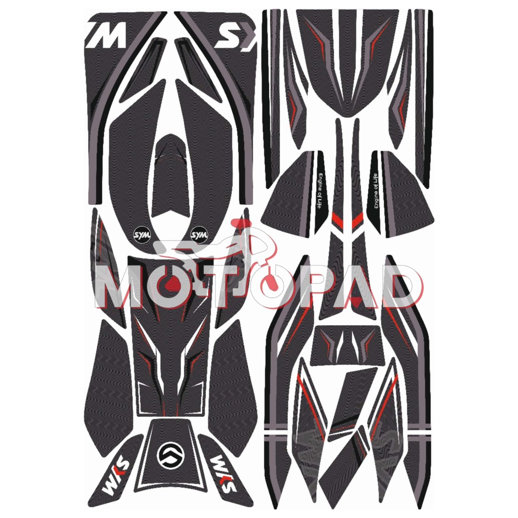 پد کامل بدنه ژله ای موتور سیکلت sym jt200 مدل طوسی قرمز خطی