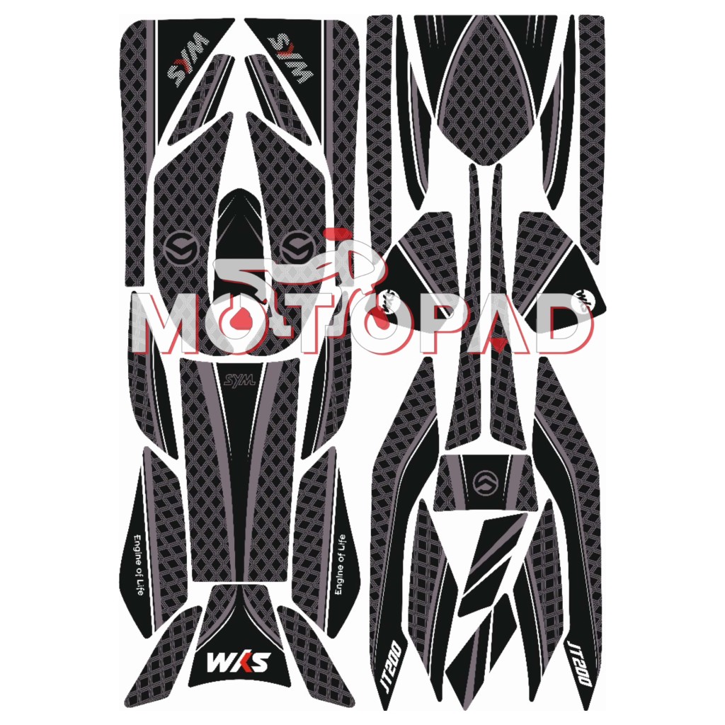 پد کامل بدنه ژله ای موتور سیکلت sym jt200 مدل مشکی طوسی لوزی