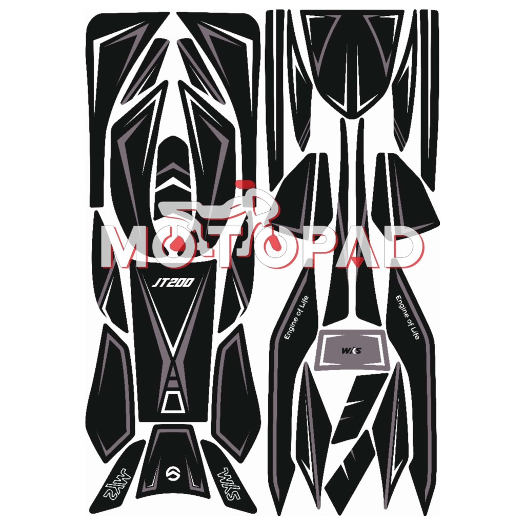 پد کامل بدنه ژله ای موتور سیکلت sym jt200 مدل مشکی سفید
